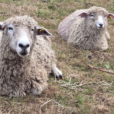 Our two Lincolnshire Longwool ladies, living their best slow-paced, grass-fuelled lives.